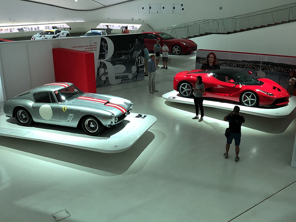 El sábado 16 por la mañana nos acercamos hasta Módena, para visitar el Museo Enzo Ferrari, situado junto a la casa natal del Commendatore y que en la actualidad gestiona la propia Ferrari. En esta ocasión se exponía una amplia variedad de modelos del Cavallino, que comprendía desde los más modernos, como el LaFerrari o el 458 Speciale A, a los modelos más clásicos como el 250GT SWB, un 250GTO o un 250LM, este último en versión Stradale, una pieza única por su rareza, además de algunos de competición como el 458GT3. A mitad de la visita se proyectó un espectacular audiovisual con la vida de Enzo Ferrari y numerosas escenas de la historia de la marca, que nos emocionó a todos.