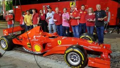 La Scuderia Ferrari cede un monoplaza de Fórmula 1 para realizar un campeonato de cambios de rueda, en el que participan los ferrarístas que se organizan por equipos, y que nuestro club se inscribió esta vez con un grupo perfectamente sincronizado, que nos permitió conseguir un mejor tiempo de solo 8 segundos en cambiar los cuatro neumáticos, y llevarnos el primer premio al ser los más rápidos, que como os podéis imaginar nos hizo mucha alegría. Para celebrarlo nos acercamos a la terraza del Ristorante Pizzeria La Brace, para cenar todos juntos unas pizzas, y poner punto y final a nuestra estancia en Italia, rodeados de una gran ambiente de fiesta que recordaremos durante mucho tiempo.