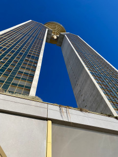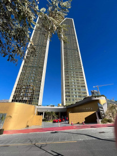 La altura del edificio es espectacular, y no existe en el Mediterráneo otro edificio residencial semejante con sus casi 200 m de altura y tan cerca de la playa. Por este motivo fuimos invitados a subir a su punto más alto, para disfrutar de unas extraordinarias vistas de Benidorm y una bonita panorámica de sus playas.