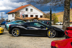 En el alto se encuentra la “muga” o la separación entre España y Francia. Después del descanso nos dirigimos ya por carreteras francesas, haciendo una pequeña parada delante del “Tren de Ka Rhune”, un tren cremallera que sube hasta el alto de Rhune. Desde allí seguimos rumbo hasta llegar al Concesionario Ferrari de Biarritz.