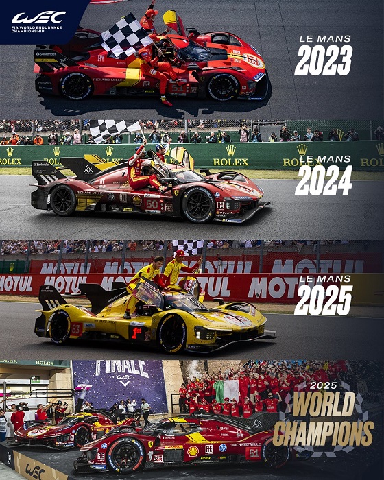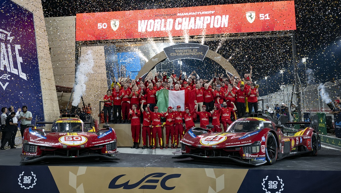 Este es el 24º título mundial de resistencia de Ferrari, incluyendo victorias absolutas y de clase, desde la fundación del campeonato FIA en 1953. El Cavallino Rampante ha conseguido su noveno título absoluto, coronándose campeón 53 años después de su último triunfo, en 1972, y este es el primer título absoluto de Pilotos en la máxima categoría de resistencia, en la que Ferrari compitió hasta 1973, cuando solo se otorgaba el título de Constructores, y nuevamente a partir de 2023, un título ganado por Pier Guidi, Calado y Giovinazzi. A todo ello hay que sumar el título logrado por el Ferrari 499P #83 amarillo pilotado por Yifei Ye, Robert Kubica y Phil Hanson, que permitió a AF Corse celebrar el título de la Copa del Mundo de Hipercars de la FIA dedicada a los equipos privados, ya en Estados Unidos, gracias a su victoria en las 24 horas de Le Mans y a los excelentes resultados logrados a lo largo de 2025.