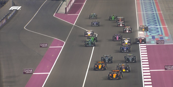 Piastri y Norris se fugaron del pelotón a marchas forzadas y rodaban en 1’25 mientras el resto de la parrilla apenas alcanzaba el 1’26, con el único adelantamiento de Antonelli sobre Alonso por la quinta plaza en medio de un gran grupo de coches con DRS.