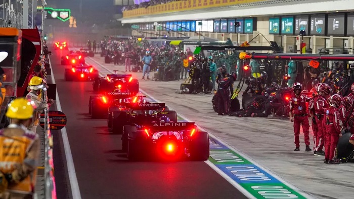 Pierre Gasly era noveno y sufrió una salida de pista en la curva 14 que provocó que su fondo plano rozase constantemente el asfalto. El francés taponaba así a todo el pelotón trasero, liderado por Hülkenberg, Charles Leclerc y Bearman. La estrategia de carrera cambió por completo cuando Gasly y Hülkenberg se tocaron en el final de la primera curva.