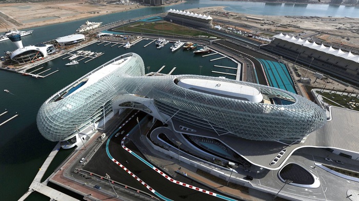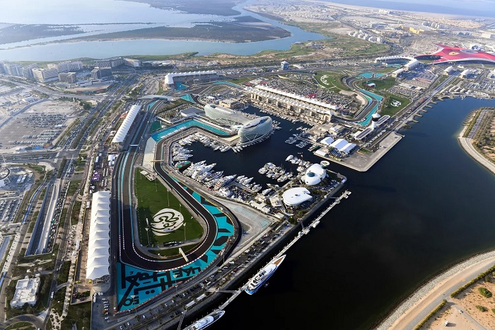 El Gran Premio de Abu Dhabi de Fórmula 1, se disputa en la Isla de Yas, un enclave artificial ganado a las aguas del Golfo Pérsico, promovido por Aldar Properties, en el que además del circuito cuenta con el parque temático Ferrari World, el mayor parque de atracciones bajo techo del mundo, situado junto a la pista y dedicado en exclusiva a la marca Ferrari, y el parque temático de la Warner Bros (Movie World), así como hoteles singulares como el que atraviesa el circuito, el W Abu Dhabi - Yas Island Hotel (antiguo Yas Viceroy Abu Dhabi Hotel), un glamuroso establecimiento de cinco estrellas y 500 habitaciones, con un magnífico puerto deportivo repleto de espectaculares yates.