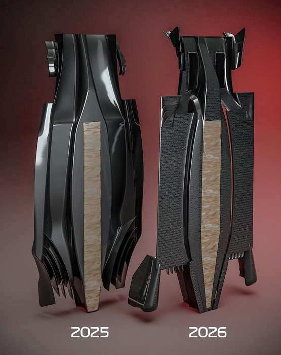 El concepto aerodinámico de los monoplazas de Fórmula 1 de 2026 también ha cambiado de forma radical. El efecto suelo que volvió en 2022 se despide tras dejar un sabor amargo en pilotos e ingenieros, retornando en su lugar el concepto de fondo plano con difusor extendido.
