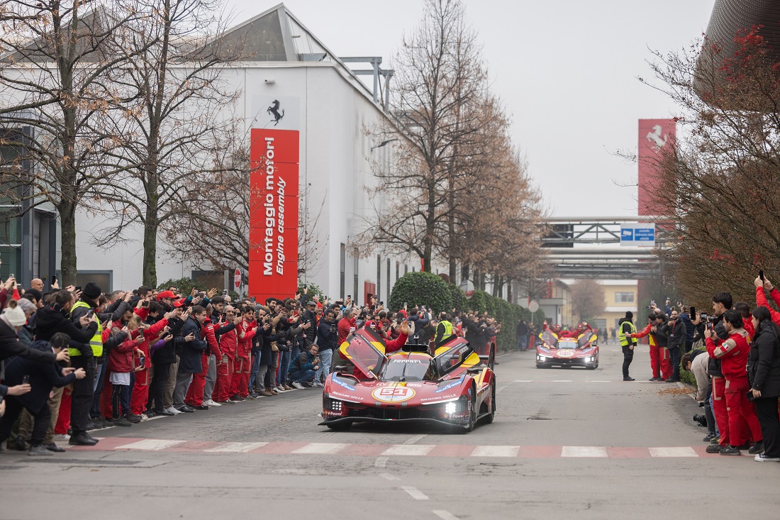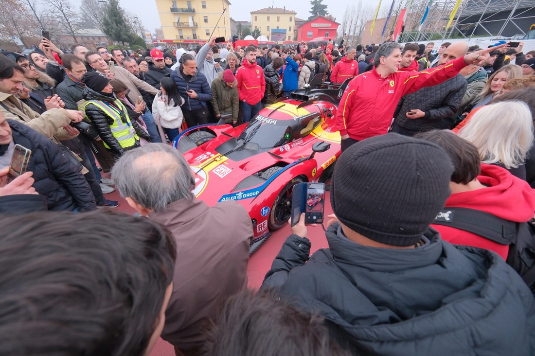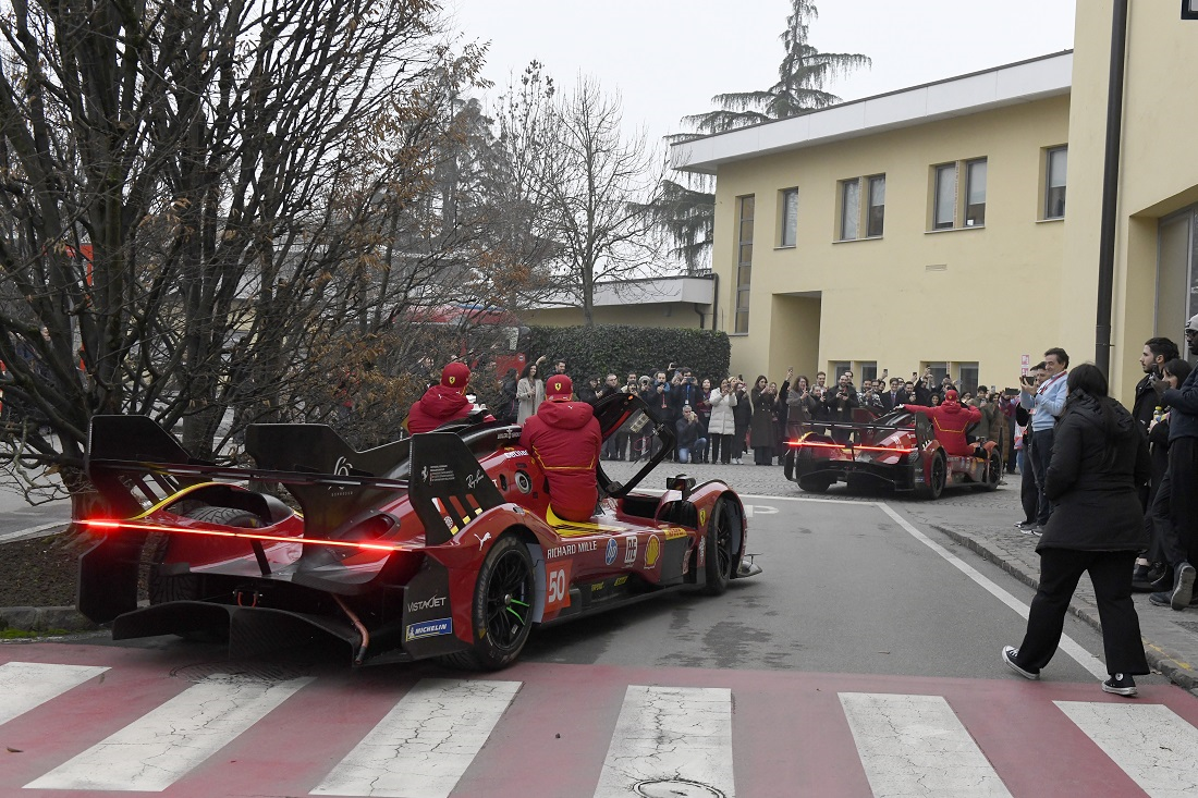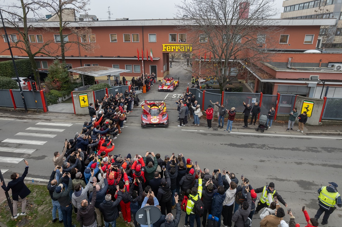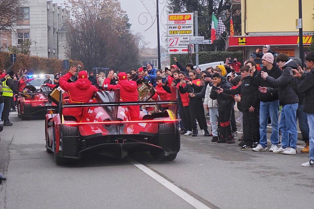 Por la mañana, los pilotos recibieron el aplauso de los empleados de Ferrari, desfilando con sus coches por las calles de la fábrica y participaron en una sesión de firma de autógrafos, antes de disfrutar de un almuerzo con los empleados. Más tarde, a primera hora de la tarde, todos los aficionados al motor que habían llegado a Maranello a partir de las 14:00h, vieron salir a los 499P por la histórica entrada de Via Abetone Inferiore. Los pilotos fueron recibidos con cariño por la afición y posteriormente se dirigieron al Museo Ferrari de Maranello para una sesión de firma de autógrafos abierta a todos.