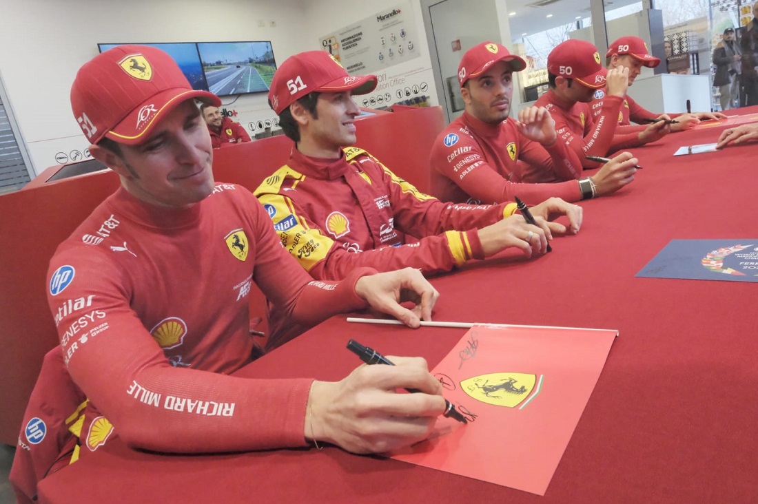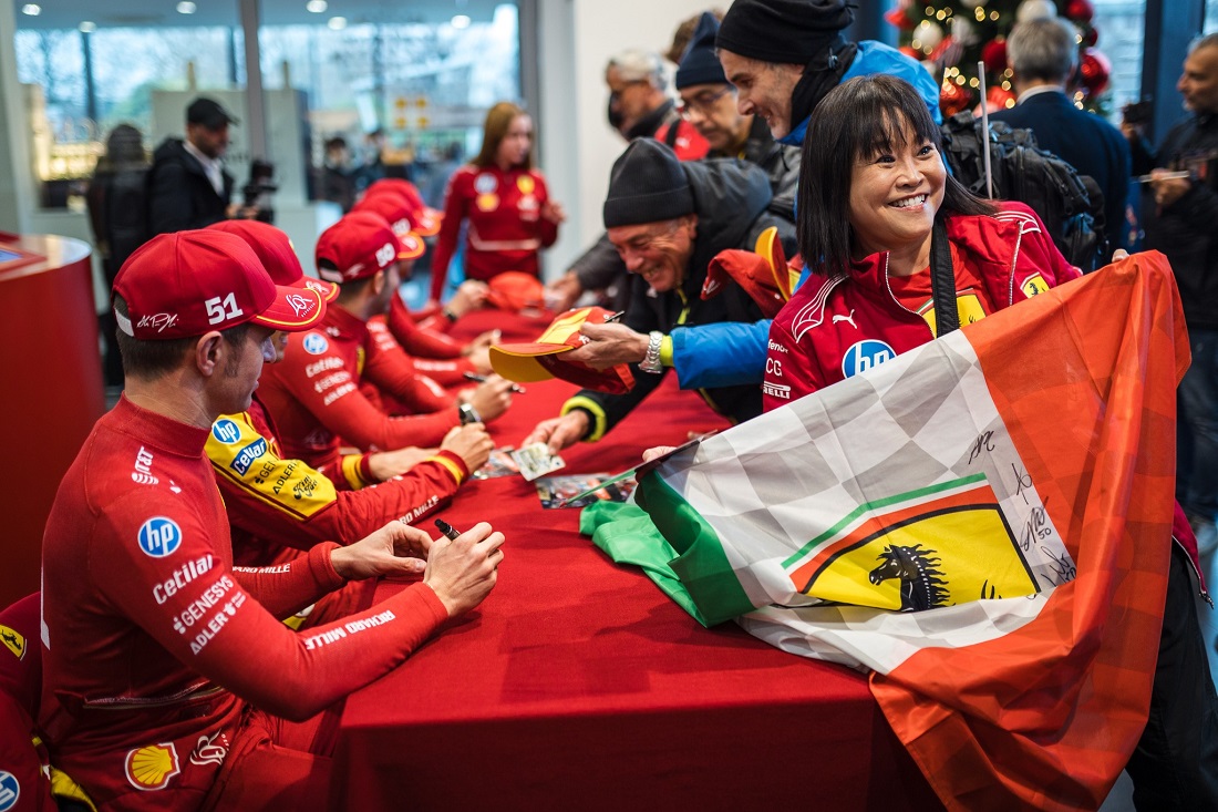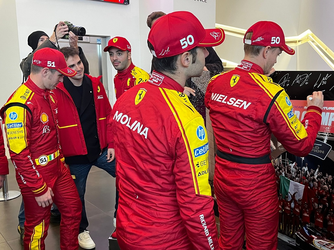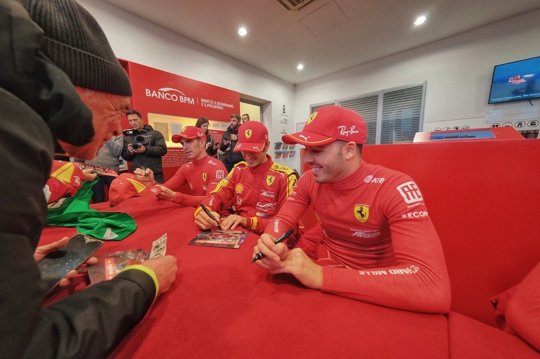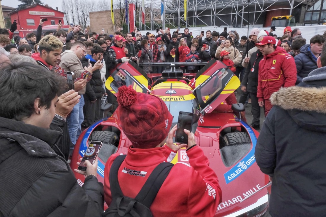 Por la mañana, los pilotos recibieron el aplauso de los empleados de Ferrari, desfilando con sus coches por las calles de la fábrica y participaron en una sesión de firma de autógrafos, antes de disfrutar de un almuerzo con los empleados. Más tarde, a primera hora de la tarde, todos los aficionados al motor que habían llegado a Maranello a partir de las 14:00h, vieron salir a los 499P por la histórica entrada de Via Abetone Inferiore. Los pilotos fueron recibidos con cariño por la afición y posteriormente se dirigieron al Museo Ferrari de Maranello para una sesión de firma de autógrafos abierta a todos.