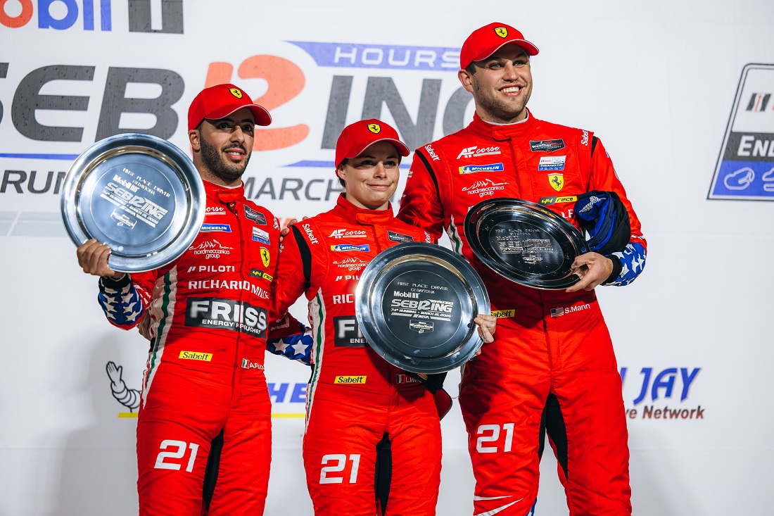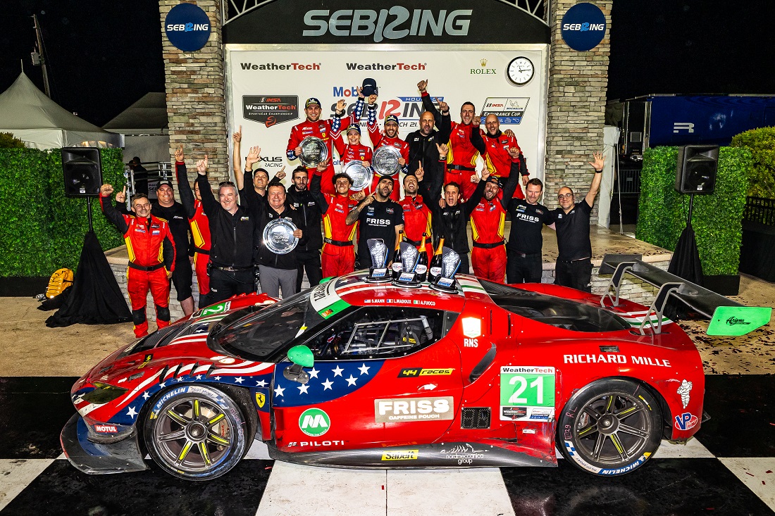 En las 12 Horas de Sebring disputadas el pasado fin de semana, segunda prueba del Campeonato IMSA SportsCar y de la Copa de Resistencia IMSA, Ferrari logró la histórica primera victoria para el nuevo 296 GT3 Evo gracias al éxito de AF Corse USA en la categoría GTD con los pilotos oficiales Antonio Fuoco, Lilou Wadoux y Simon Mann. En cambio en GTD Pro, el mejor resultado fue un séptimo puesto para el equipo Triarsi Competizione.