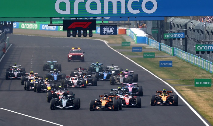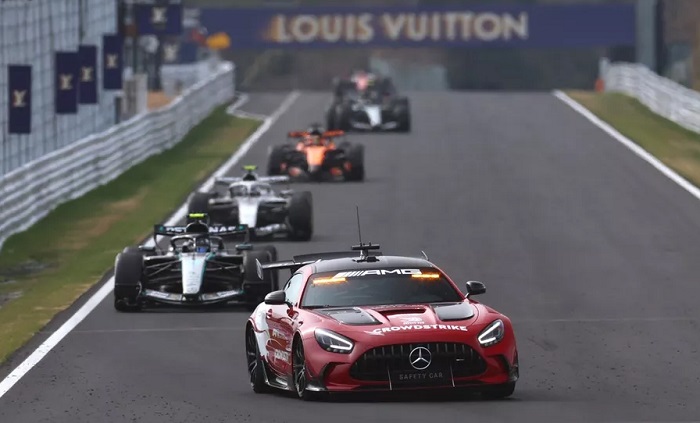 El GP comenzó con diez minutos de retraso por un accidente en la Porsche Carrera Cup local que obligó a reparar una de las barreras. Todos los pilotos salían con neumáticos medios excepto Valtteri Bottas, que empezó con duros. Los Mercedes salieron muy mal y fueron superados por Piastri, Leclerc y Lando Norris, cayendo Russell al cuarto puesto, justo por delante de Lewis Hamilton y de Kimi Antonelli, aunque el italiano ha pasado rápidamente al inglés. Por detrás, Pierre Gasly era séptimo, con Arvid Lindblad y Max Verstappen detrás.
