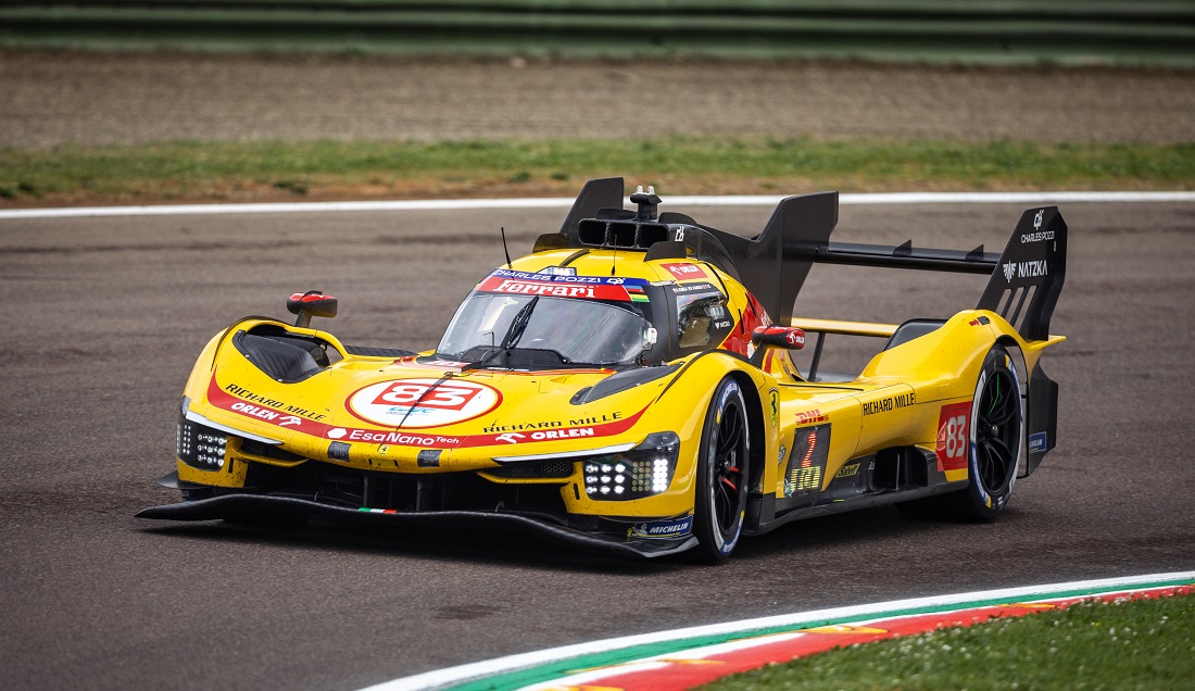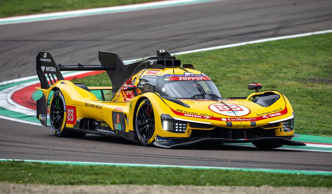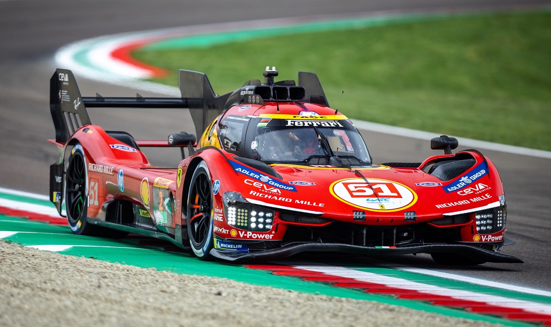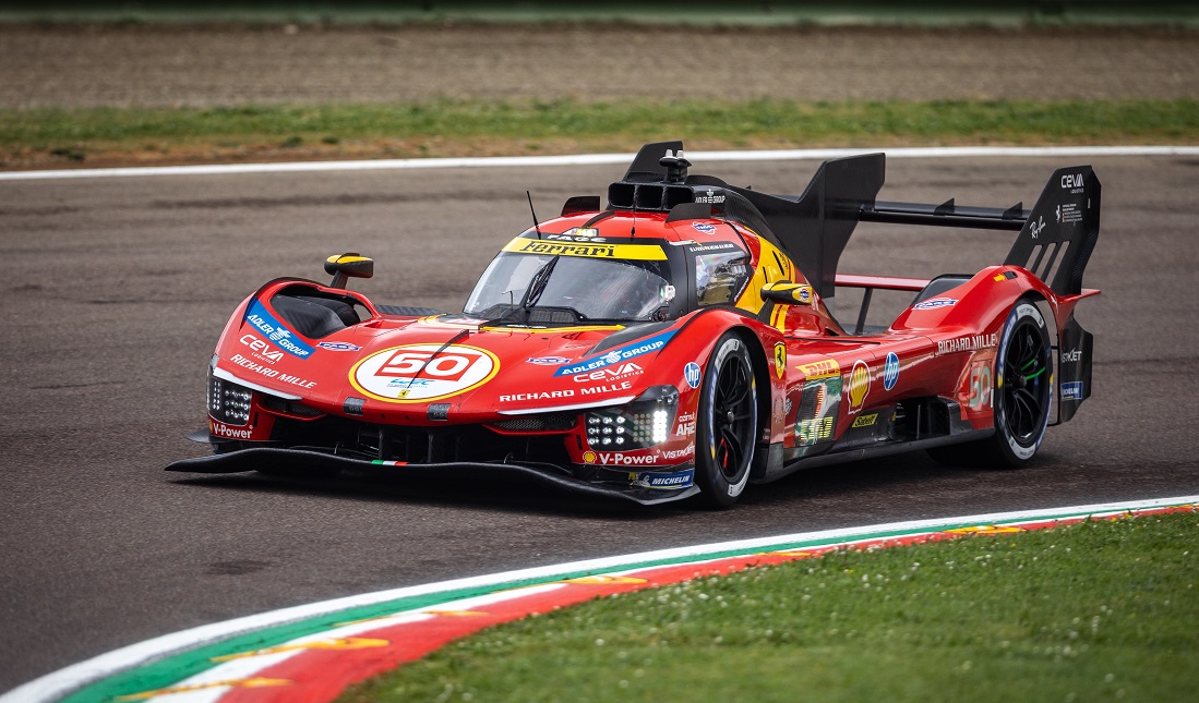 Segunda sesión: En la segunda sesión, celebrada de 14:00 a 18:30h CEST, que comenzó en condiciones secas antes de que la lluvia volviera al circuito italiano, obligando a los equipos a cambiar de nuevo a neumáticos de lluvia, los Ferrari 499P volvieron a ocupar las tres primeras posiciones de la clasificación. Esta vez, fue el Ferrari-AF Corse #50 el que marcó el mejor tiempo, deteniendo el cronómetro en 1’31’’177, por delante del AF Corse #83 a 126 milésimas de segundo, y del #51 que fue tercero, a 198 milésimas de segundo. En cuanto a vueltas completadas, las cifras fueron muy similares: 94 para el #50, 97 para el #51 y 98 para el #83.