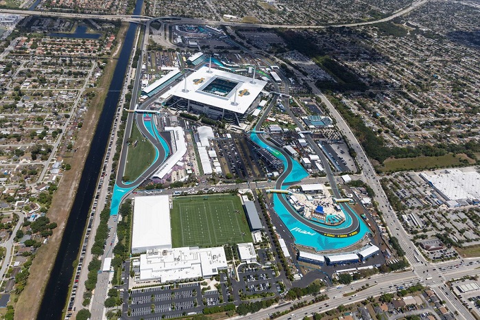 La empresa británica Apex Circuit Design fue la encargada de diseñar este circuito que gira en sentido contrario a las agujas del reloj, y rodea el Hard Rock Stadium, una instalación polivalente que habitualmente acoge los partidos del equipo de fútbol americano Miami Dolphins. En el interior de las instalaciones se han construido (como en años anteriores), zonas reservadas para los equipos, creando así un ambiente muy especial para un evento de Fórmula 1.